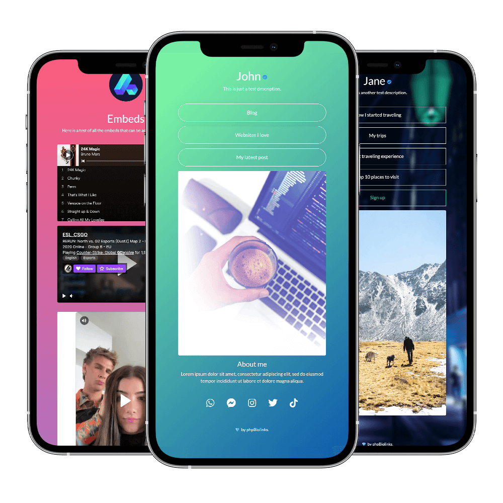 Shorten URLs, create bio link pages, custom QR codes, vcard links, file links & more.